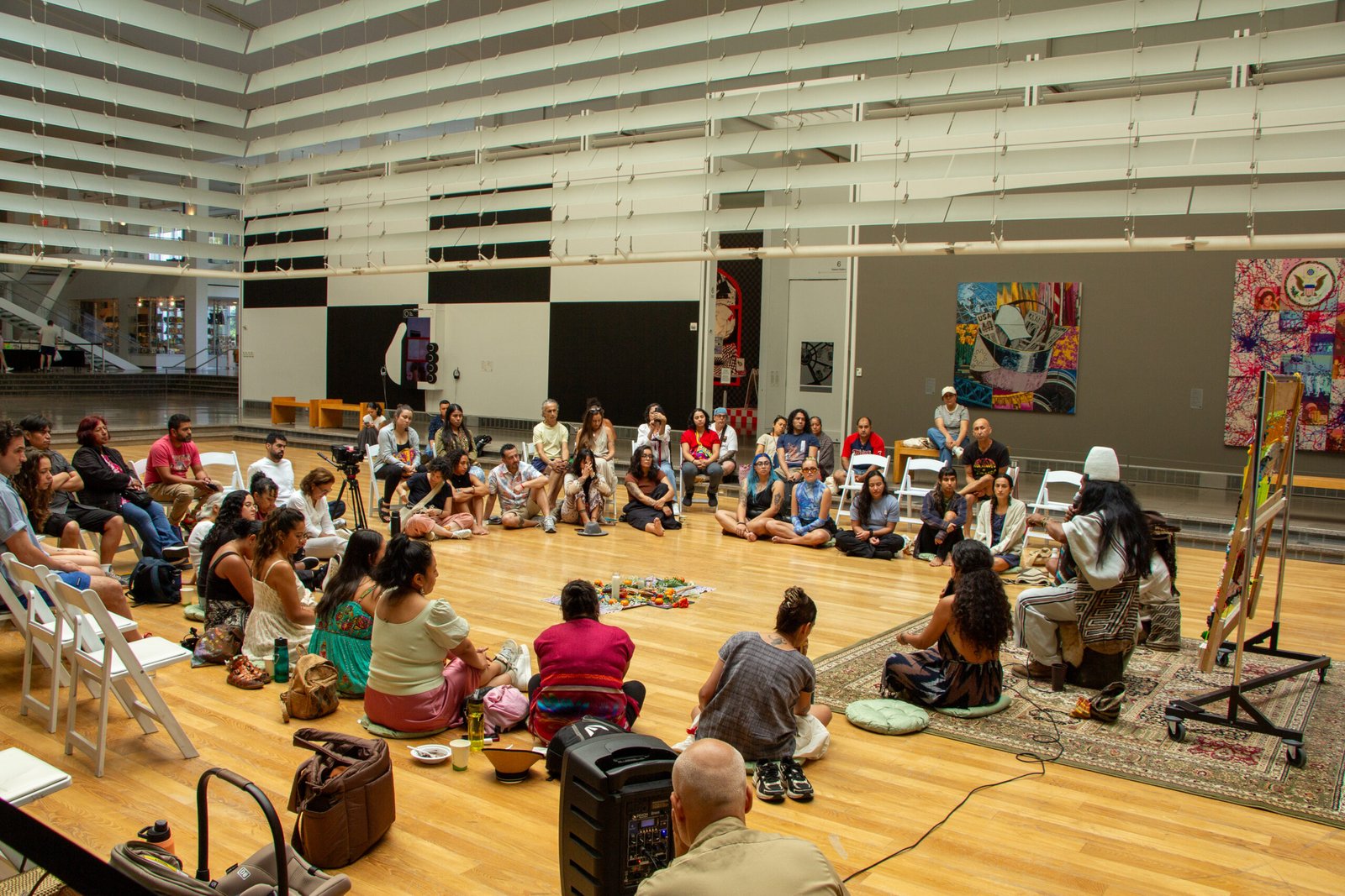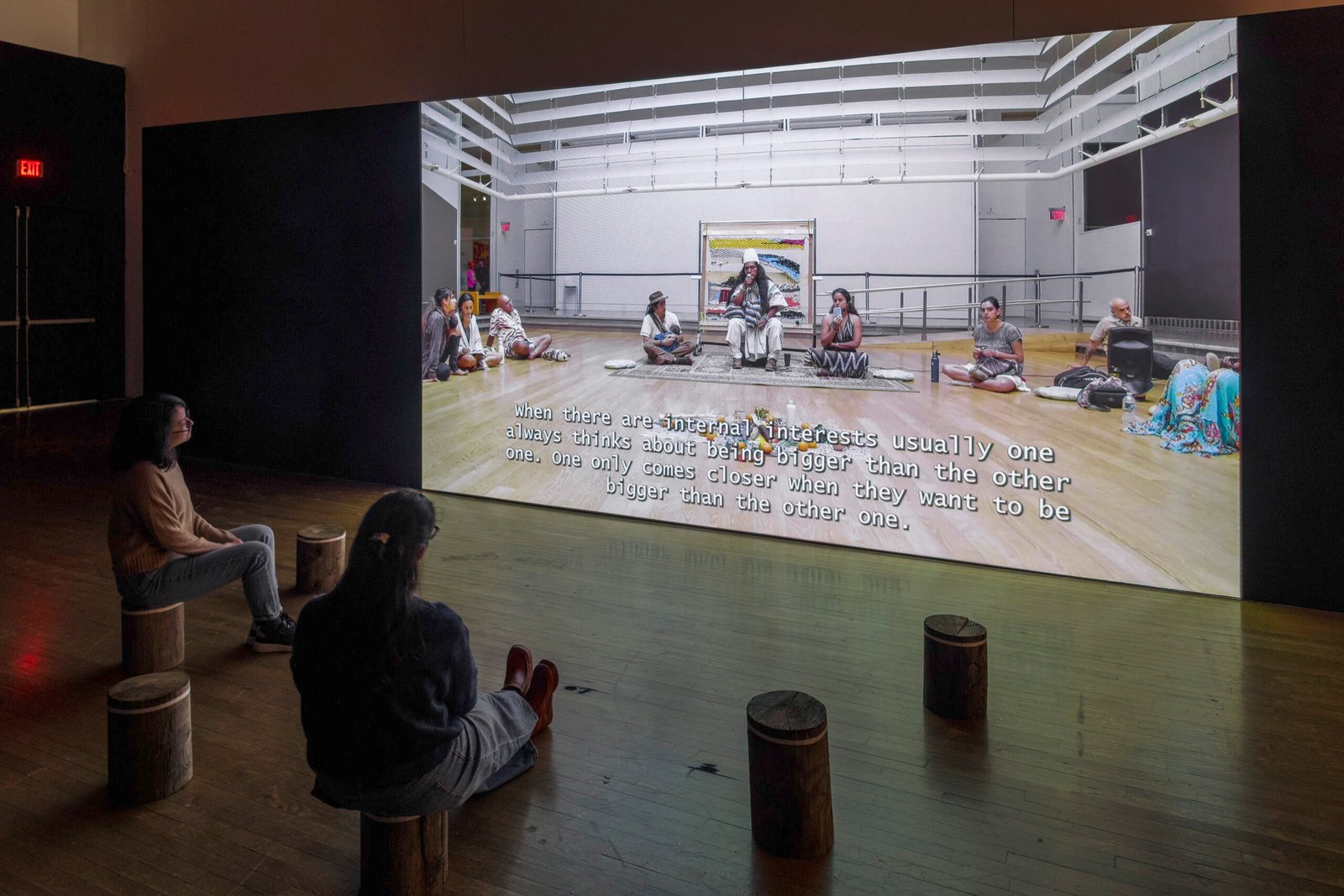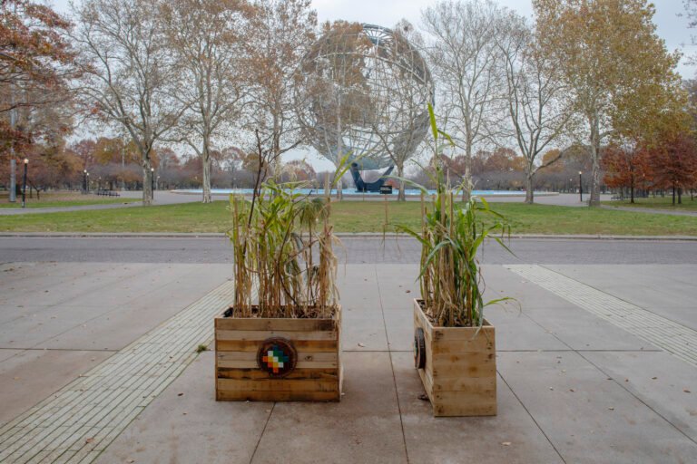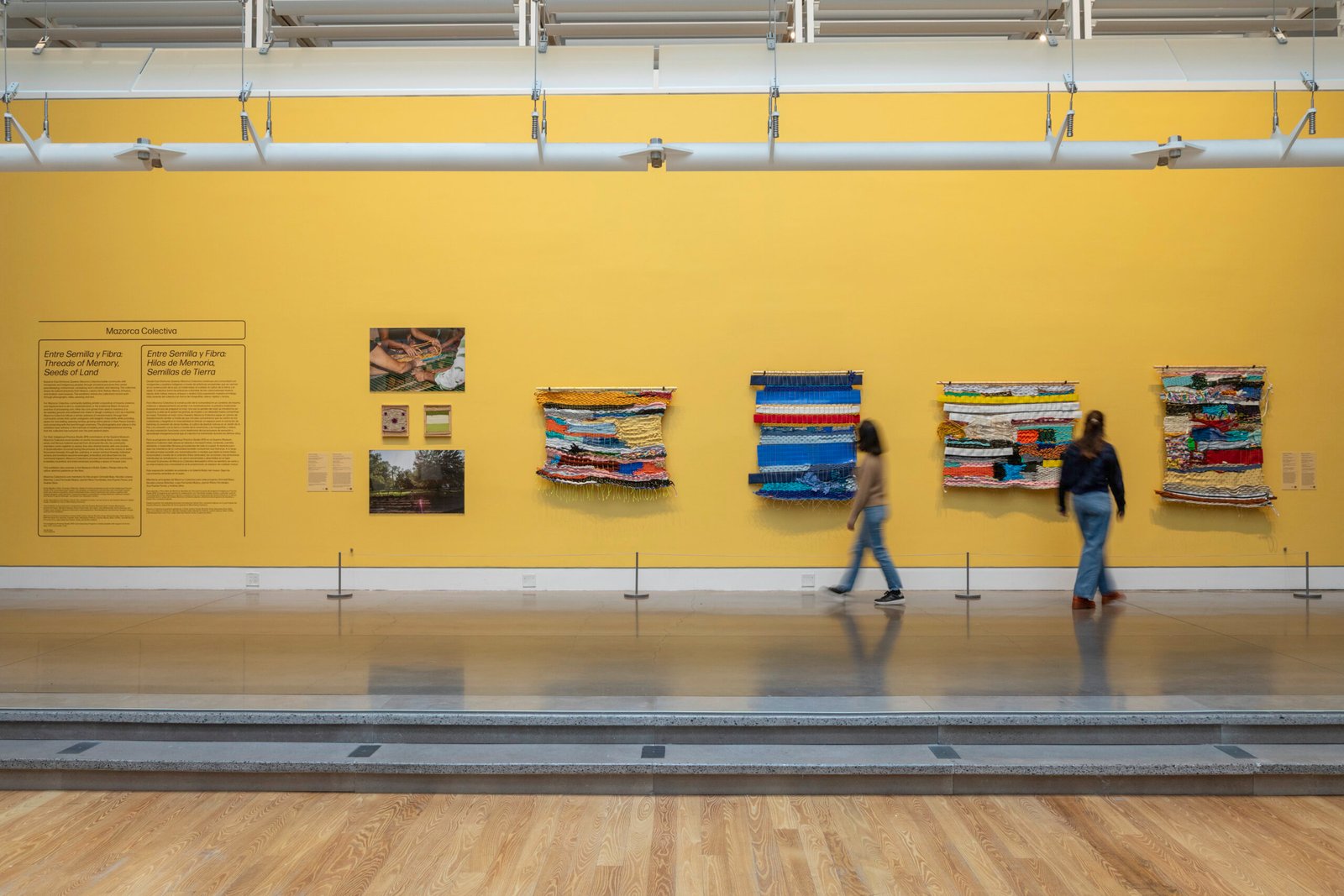 Based in East Elmhurst, Queens, Mazorca Colectiva builds community with immigrants and Indigenous peoples through ancestral practices that center motherhood, caretaking, land cultivation, and weaving. The collective draws its cultural practices from Muisca, Lakota, Diné, Nahua, Mexica, Arhuaco, and Andean cosmovisions. This exhibition shares the collective’s recent work through photography, video, weaving, and text. Mazorca Colectiva’s process demonstrates how community is seeded, nourished, and interconnected, providing a space of mutual care.